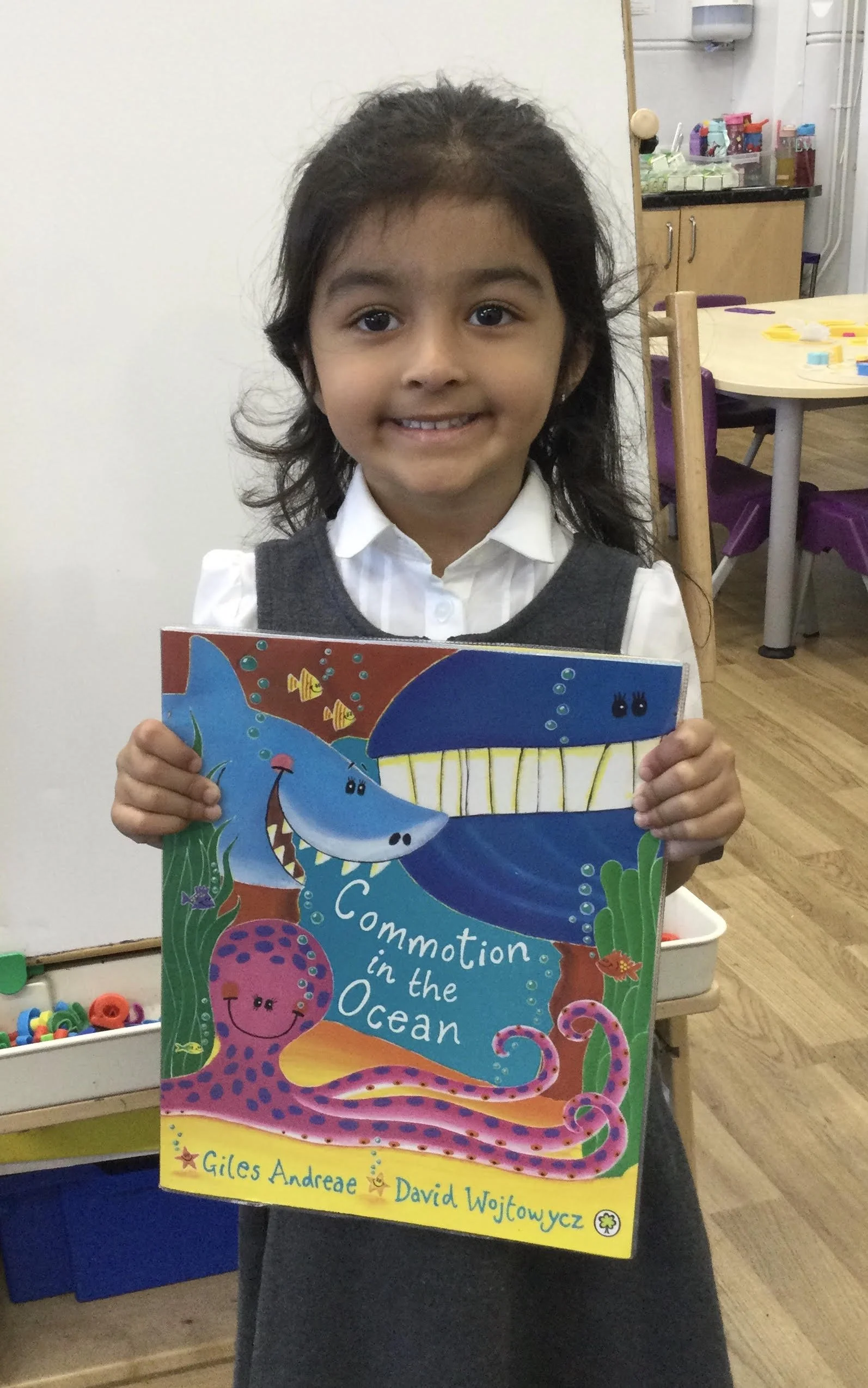 We have been reading "Commotion in the Ocean", which is a colourful rhyming picture book all about sea creatures, from the author of international bestseller, Giraffes Can't Dance, Giles Andreae. The book includes blue whales, sea turtles, jellyfish, dolphins and more! Each page introduces a different animal, with a short read-aloud rhyme. This is a perfect book to read alongside our Under the Sea topic!